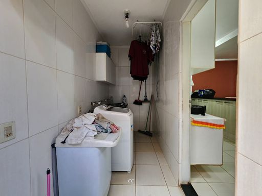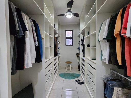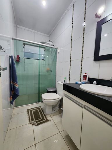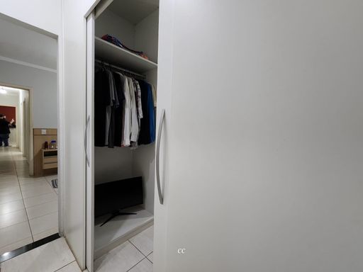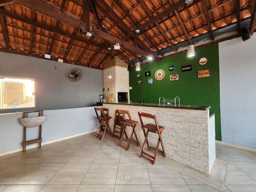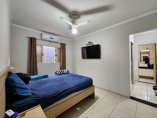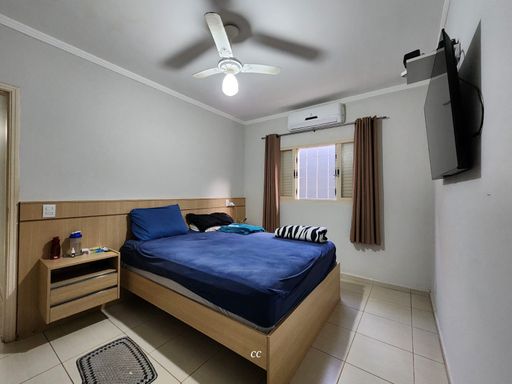 Garagem coberta pra quatros carros, toda cercada com cerca elétrica, casa toda em porcelanato, sala de TV rebaixada com gesso e ar condicionado, cozinha com planejados, 2 quartos, sendo um suíte e closet, e ar condicionado.